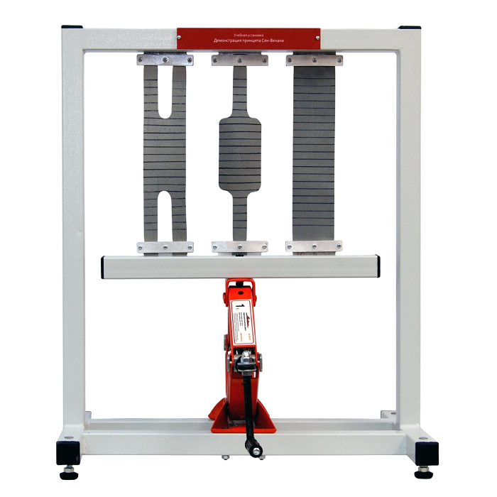 Лабораторная установка «Демонстрация принципа Сен-Венана» предназначена для проведения лабораторно- практических занятий дисциплин «Техническая механика», «Прикладная механика», «Сопротивление материалов» и других смежных технических дисциплин. Стенд позволяет исследовать принцип Сен-Венана на примере обратимой деформации пластичных образцов различного профиля. Лабораторная установка позволяет организовать рабочее место для бригады студентов из 2-3 человек.